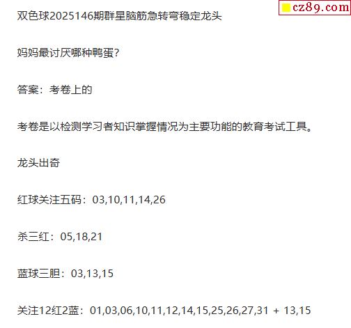 > 25年福彩双色球146期 群星脑筋急转弯定龙头字谜