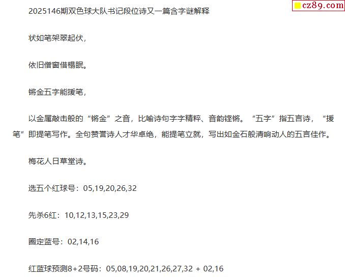 > 25年福彩双色球146期 大队书记段位诗另一篇
