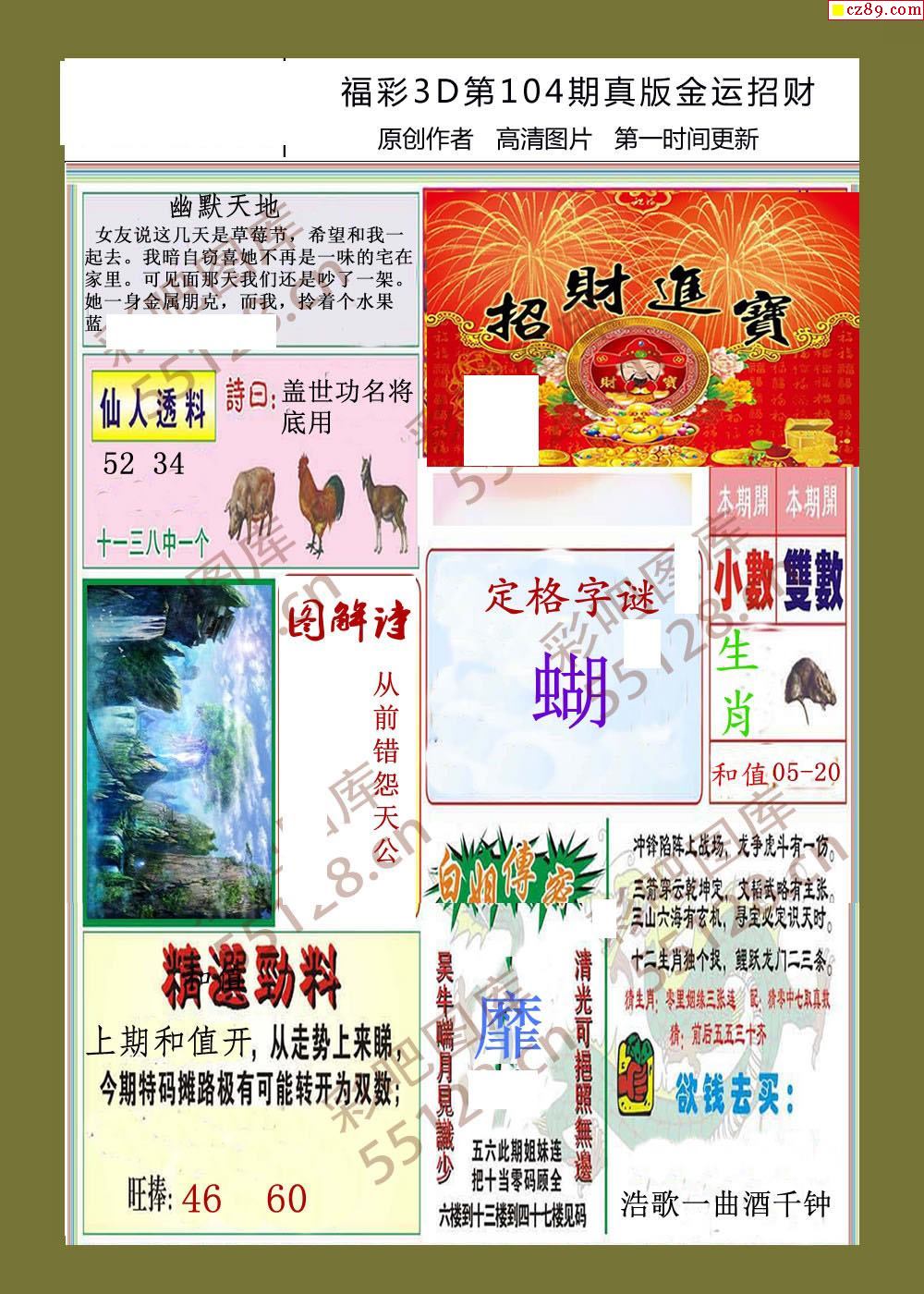 26年104期福彩3d金运招财画迷
