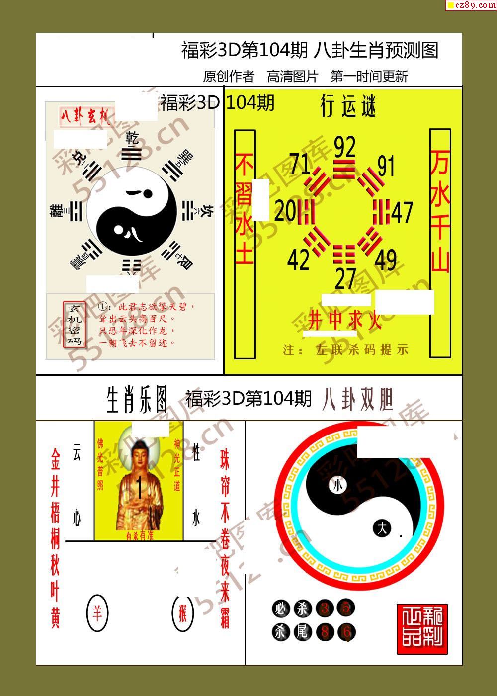 首页 > 福彩3D图谜 > 26年104期福彩3d八卦生肖预测图