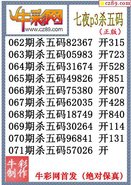 七夜杀码071期体彩P3图谜(原创)