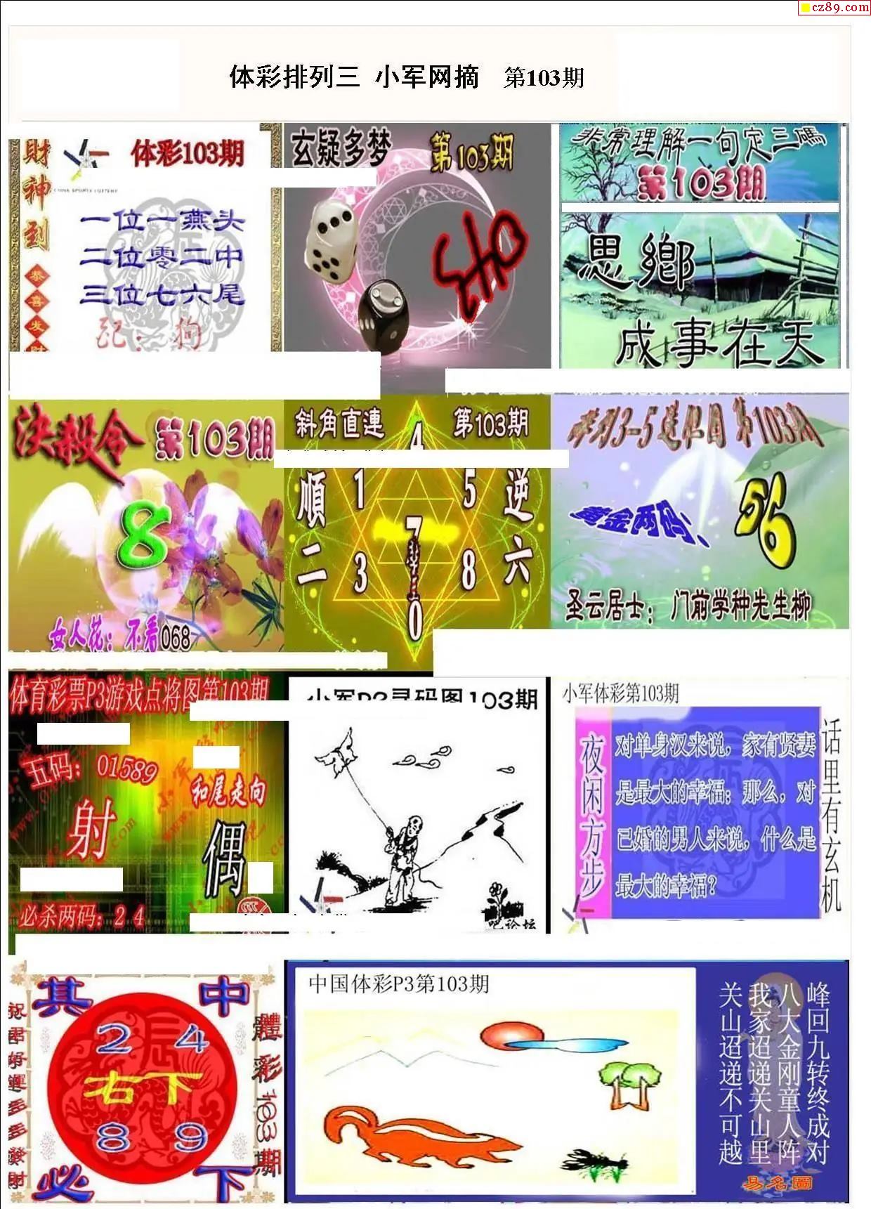 小军网摘26年103期体彩P3彩报图谜